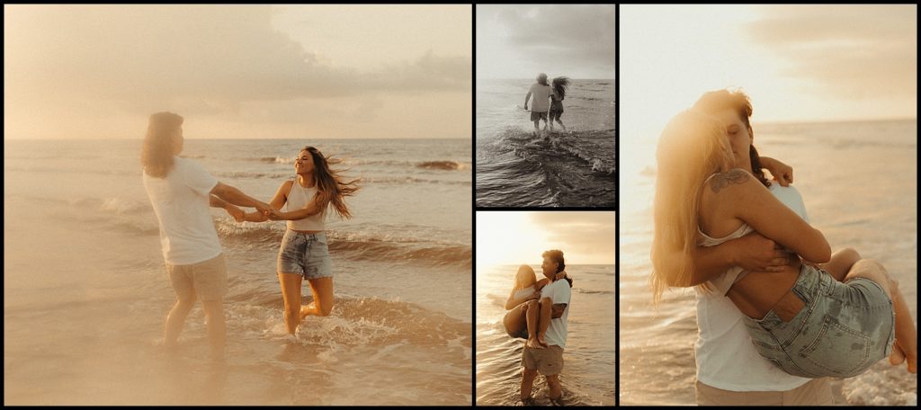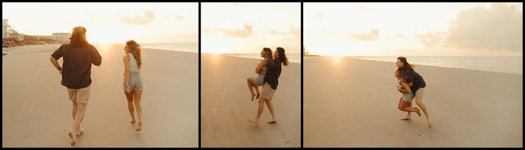 The only thing that could possibly make it more special, is getting to experience this with your honey. I met up with Kari & Gray on St. Simons Island at the break of dawn, and captured their loving, playful relationship as they ran through the waves while the sun cast such a dreamy glow. There’s a reason it’s called golden hour. If I could set music to play while scrolling through these photos, it would be Golden Hour – Kacey Musgraves for those sweet, intimate moments, and then transition into Golden – Harry Styles for the more carefree ones – so maybe queue up some music while you view these photos. It turns it into somethin’ special. 🙂